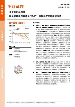 [金属]2024-09-18-平安证券-化工新材料行业周报:飓风影响墨西哥湾油气生产,短期供应扰动推涨油价-15页(银创产业通www.chanyetong.net)