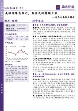 [金属]2024-09-17-华鑫证券-有色金属行业周报:美联储降息临近,黄金或将持续上涨-19页(银创产业通www.chanyetong.net)