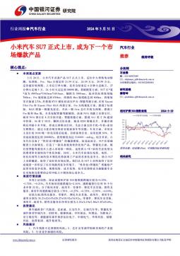 [汽车零部件]2024-03-31-中国银河-汽车行业行业周报:小米汽车SU7正式上市,成为下一个市场爆款产品-13页(银创产业通www.chanyetong.net)(银创产业通www.chanyetong.net)