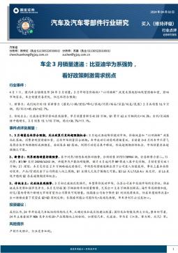[汽车零部件]2024-04-02-国金证券-汽车及汽车零部件行业研究:车企3月销量速递:比亚迪华为系强势,看好政策刺激需求拐点-8页(银创产业通www.chanyetong.net)(银创产业通www.chanyetong.net)
