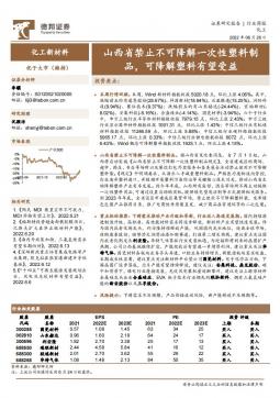 [高分子]2022-06-27-德邦证券-化工新材料行业周报:山西省禁止不可降解一次性塑料制品,可降解塑料有望受益-13页(银创产业通www.chanyetong.net)(银创产业通www.chanyetong.net)