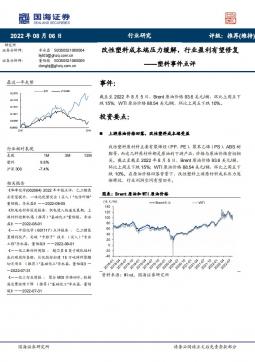 [高分子]2022-08-07-国海证券-塑料事件点评:改性塑料成本端压力缓解,行业盈利有望修复-7页(银创产业通www.chanyetong.net)(银创产业通www.chanyetong.net)