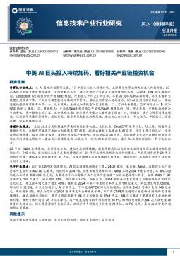 [信息技术]2024-05-10-国金证券-信息技术产业行业研究:中美AI巨头投入持续加码,看好相关产业链投资机会-16页(银创产业通www.chanyetong.net)(银创产业通www.chanyetong.net)