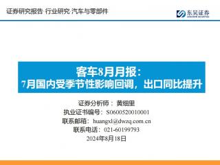 [汽车整车]2024-08-19-东吴证券-客车8月月报:7月国内受季节性影响回调,出口同比提升-17页(银创产业通www.chanyetong.net)(银创产业通www.chanyetong.net)