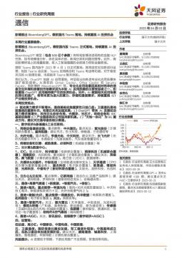 [通信]2023-04-04-天风证券-通信行业研究周报:彭博推出BloombergGPT,微软国内Teams落地,持续重视AI投资机会-14页(银创产业通www.chanyetong.net)(银创产业通www.chanyetong.net)