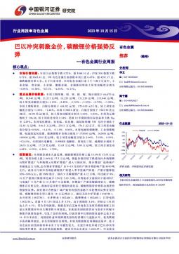 [金属]2023-10-16-中国银河-有色金属行业周报:巴以冲突刺激金价,碳酸锂价格强势反弹-19页(银创产业通www.chanyetong.net)