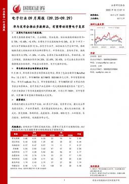 [消费电子]2023-10-08-国联证券-电子行业09月周报:华为发布会推出多款新品,有望带动消费电子复苏-10页(银创产业通www.chanyetong.net)(银创产业通www.chanyetong.net)