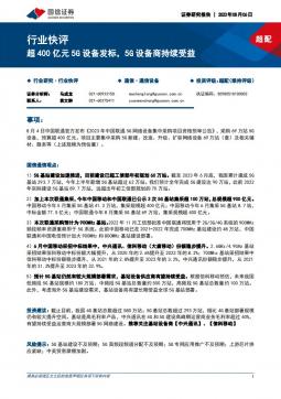 [5G]2023-08-07-国信证券-通信行业快评:超400亿元5G设备发标,5G设备商持续受益-7页(银创产业通www.chanyetong.net)(银创产业通www.chanyetong.net)
