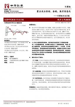[智慧医疗]2023-01-05-中原证券-计算机行业月报:重点关注信创、金税、医疗信息化-13页(银创产业通www.chanyetong.net)(银创产业通www.chanyetong.net)
