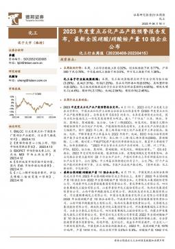 [化工]2023-04-17-德邦证券-化工行业周报:2023年度重点石化产品产能预警报告发布,最新全国硝酸-硝酸铵产量10强企业公布-26页(银创产业通www.chanyetong.net)