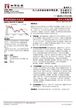 [化工]2023-06-08-中原证券-基础化工行业月报:化工品价格延续回调态势,关注氟化工与轮胎行业-18页(银创产业通www.chanyetong.net)