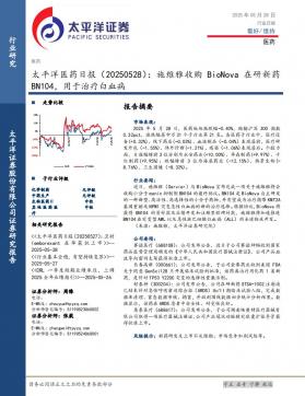 [医药]2025-05-29-太平洋-医药日报:施维雅收购BioNova在研新药BN104,用于治疗白血病-3页(银创产业通www.chanyetong.net)