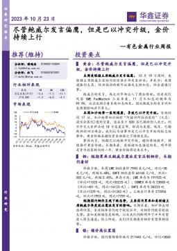 [金属]2023-10-23-华鑫证券-有色金属行业周报:尽管鲍威尔发言偏鹰,但是巴以冲突升级,金价持续上行-16页(银创产业通www.chanyetong.net)