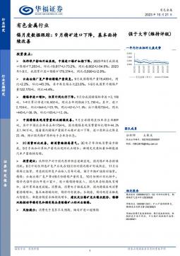[金属]2023-10-23-华福证券-锡月度数据跟踪:9月精矿进口下降,基本面持续改善-12页(银创产业通www.chanyetong.net)