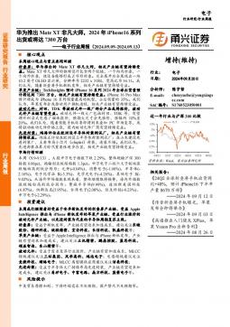 [半导体]2024-09-20-甬兴证券-电子行业周报:华为推出Mate XT非凡大师,2024年iPhone16系列出货或将达7300万台-15页(银创产业通www.chanyetong.net)