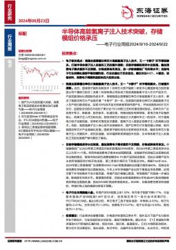 [半导体]2024-09-23-东海证券-电子行业周报:半导体高能氢离子注入技术突破,存储模组价格承压-14页(银创产业通www.chanyetong.net)