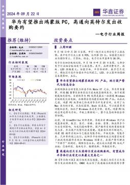 [半导体]2024-09-23-华鑫证券-电子行业周报:华为有望推出鸿蒙版PC,高通向英特尔发出收购要约-41页(银创产业通www.chanyetong.net)