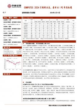 [半导体]2024-06-11-中泰证券-电子行业周报:COMPUTEX 2024引领新业态,看好AI PC布局机遇-15页(银创产业通www.chanyetong.net)
