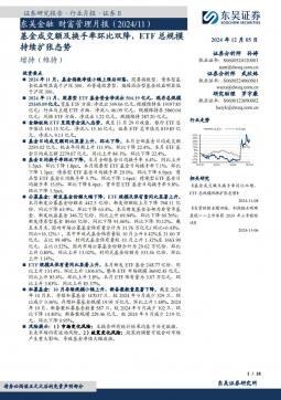 [金融]2024-12-05-东吴证券-东吴金融财富管理月报(2024-11):基金成交额及换手率环比双降,ETF总规模持续扩张态势-18页(银创产业通www.chanyetong.net)