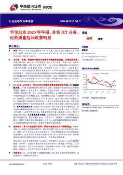 [通信]2024-03-31-中国银河-通信行业点评报告:华为发布2023年年报,夯实ICT业务,经营质量边际改善明显-2页(银创产业通www.chanyetong.net)(银创产业通www.chanyetong.net)