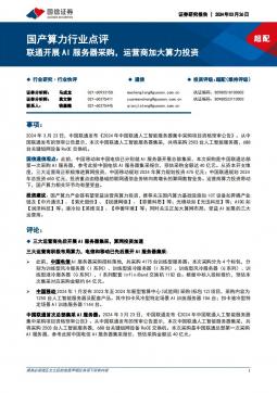 [通信]2024-03-26-国信证券-国产算力行业点评:联通开展AI服务器采购,运营商加大算力投资-6页(银创产业通www.chanyetong.net)(银创产业通www.chanyetong.net)