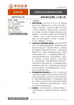 [生物医药]2025-04-14-世纪证券-医药生物行业周报(4月第2周):全国各地出台创新药械支持政策-9页(银创产业通www.chanyetong.net)