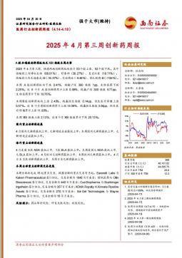 [生物医药]2025-04-21-西南证券-2025年4月第三周创新药周报-19页(银创产业通www.chanyetong.net)