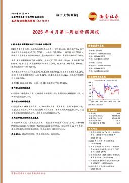 [生物医药]2025-04-17-西南证券-2025年4月第二周创新药周报-18页(银创产业通www.chanyetong.net)