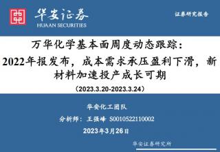 [化工]2023-03-27-华安证券-万华化学基本面周度动态跟踪:2022年报发布,成本需求承压盈利下滑,新材料加速投产成长可期-33页(银创产业通www.chanyetong.net)