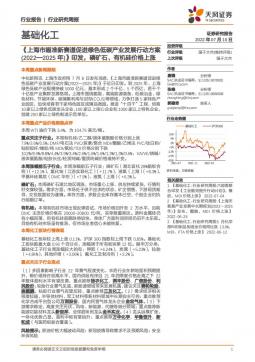 [化工]2022-07-11-天风证券-基础化工行业研究周报:《上海市瞄准新赛道促进绿色低碳产业发展行动方案(2022—2025年)》印发,磷矿石、有机硅价格上涨-21页(银创产业通www.chanyetong.net)