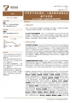 [化工]2022-07-12-德邦证券-化工行业周报:万华多个项目获批,上海政策促进绿色低碳产业发展-25页(银创产业通www.chanyetong.net)