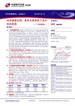 [化工]2023-08-02-中国银河-石油化工7月动态报告:油价强势反弹,看好内需修复下龙头标的表现-24页(银创产业通www.chanyetong.net)