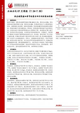 [化工]2023-07-30-国联证券-石油石化07月周报:供应趋紧叠加季节性需求回升利好原油价格-22页(银创产业通www.chanyetong.net)