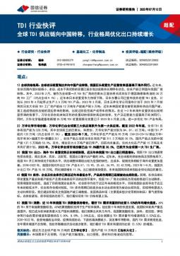[化工]2023-07-12-国信证券-TDI行业快评:全球TDI供应链向中国转移,行业格局优化出口持续增长-11页(银创产业通www.chanyetong.net)