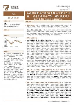 [化工]2023-07-17-德邦证券-化工行业周报:山西明确重点打造10条煤化工重点产业链,万华化学部分TDI、MDI装置停产-26页(银创产业通www.chanyetong.net)