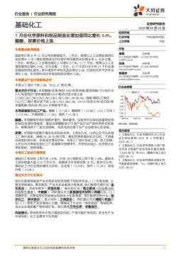 [化工]2023-08-21-天风证券-基础化工行业研究周报:7月份化学原料和制品制造业增加值同比增长9.8%,醋酸、尿素价格上涨-19页