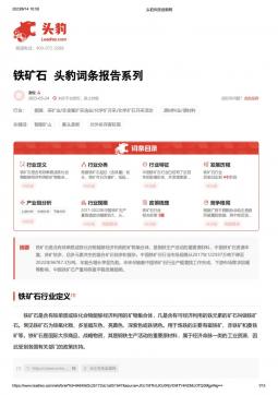 [化工]2023-08-25-头豹研究院-铁矿石 头豹词条报告系列-15页(银创产业通www.chanyetong.net)
