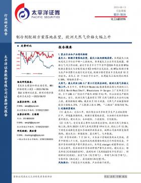 [化工]2023-08-15-太平洋-化工&新材料行业周报:制冷剂配额方案落地在望,欧洲天然气价格大幅上升-36页