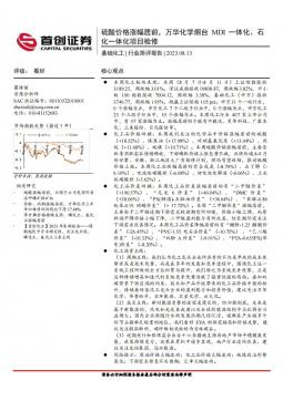 [化工]2023-08-16-首创证券-基础化工行业简评报告:硫酸价格涨幅居前,万华化学烟台MDI一体化、石化一体化项目检修-18页(银创产业通www.chanyetong.net)