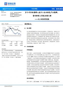 [半导体材料]2023-11-05-国联证券-化工行业2023年三季报回顾及周报:三季度化工板块回暖,半导体材料板块走强-22页(银创产业通www.chanyetong.net)