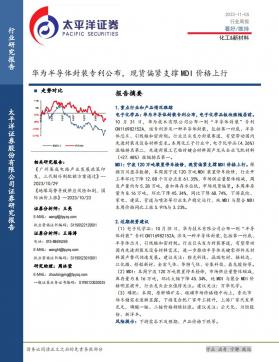 [半导体材料]2023-11-07-太平洋-化工&新材料行业周报:华为半导体封装专利公布,现货偏紧支撑MDI价格上行-39页(银创产业通www.chanyetong.net)
