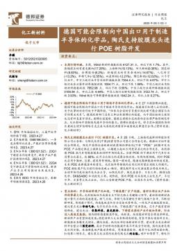 [半导体材料]2023-05-05-德邦证券-化工新材料行业周报:德国可能会限制向中国出口用于制造半导体的化学品,陶氏支持胶膜龙头进行POE树脂开发-18页(银创产业通www.chanyetong.net)