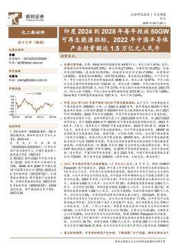 [半导体材料]2023-04-10-德邦证券-化工新材料行业周报:印度2024到2028年每年投放50GW可再生能源招标,2022年中国半导体产业投资额达1.5万亿元人民币-14页(银创产业通www.chanyetong.net)