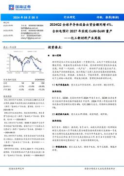 [半导体材料]2024-09-08-国海证券-化工新材料产业周报:2024Q2全球半导体设备出货金额同增4%,台积电预计2027年实现CoW-SoW量产-32页