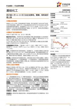 [化工]2022-08-22-天风证券-基础化工行业研究周报:四川省8月14-20日工业企业限电,黄磷、有机硅价格上涨-21页(银创产业通www.chanyetong.net)