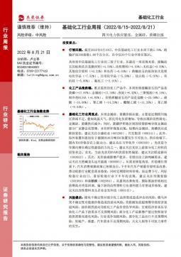 [化工]2022-08-22-国联证券-化工行业8月周报:伊核协议签订预期压制油价,欧洲能源危机持续发酵-12页(银创产业通www.chanyetong.net)
