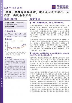 [化工]2025-10-20-华鑫证券-基础化工行业研究:硫酸、硫磺等涨幅居前,建议关注进口替代、纯内需、高股息等方向-34页(银创产业通www.chanyetong.net)