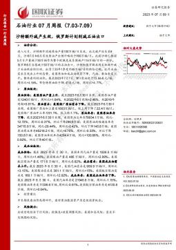 [化工]2023-07-10-国联证券-石油行业07月周报:沙特额外减产生效,俄罗斯计划削减石油出口-21页(银创产业通www.chanyetong.net)
