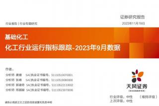[化工]2023-11-20-天风证券-基础化工行业专题研究:2023年9月数据-化工行业运行指标跟踪-38页(银创产业通www.chanyetong.net)