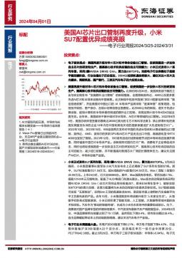 [半导体]2024-04-01-东海证券-电子行业周报:美国AI芯片出口管制再度升级,小米SU7配置优异成绩亮眼-15页(银创产业通www.chanyetong.net)